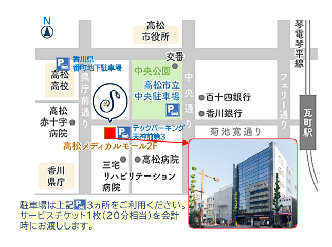 〒760-0018 香川県高松市天神前5-6 高松メディカルモール2F